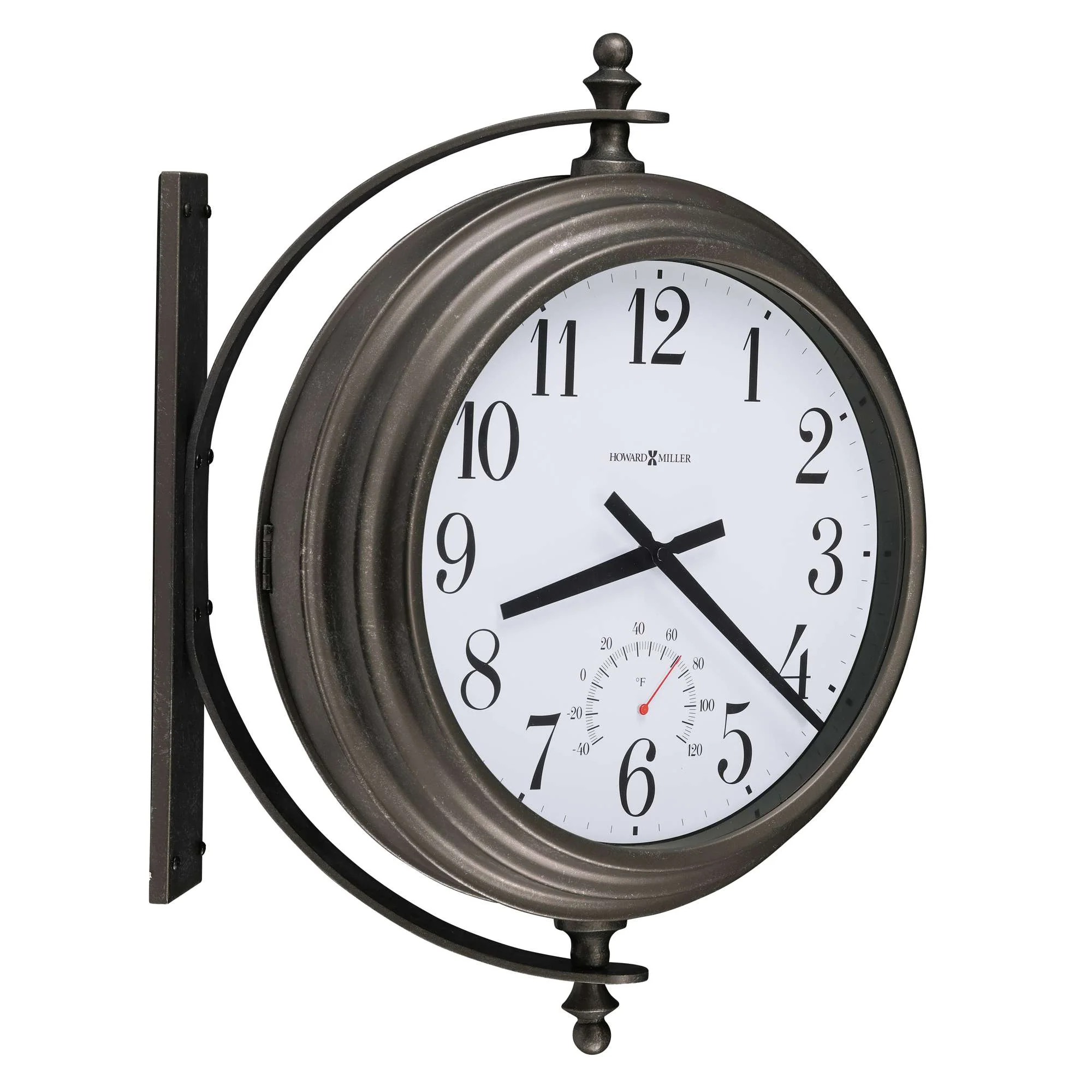 - This attractive double sided wall clock is designed for indoor or outdoor use.